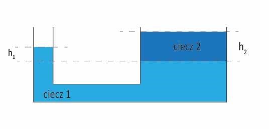 Po wypełnieniu poszczególnych naczyń niemieszającymi się cieczami o różnych gęstościach, poziomy cieczy ustalą się na różnych wysokościach, dążąc do równowagi ciśnień w miejscu połączenia. Im mniejsza gęstość cieczy w danym naczyniu, tym wyższy będzie jej poziom. Na poziomie zetknięcia się cieczy o gęstościach ρ1 i ρ2, ciśnienia słupów płynów o wysokościach h1 i h2 są takie same: ρ1gh1=ρ2gh2. Można tu także zaobserwować zależność zwaną potocznie paradoksem hydrostatycznym, tzn. że ciśnienie na dnie każdego z naczyń jest takie samo dla tej samej wysokości słupa cieczy, niezależnie od ilości cieczy.