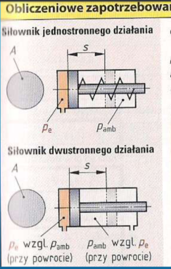 - Dwustronnego działania – suw roboczy odbywa się w dwóch przeciwstawnych kierunkach