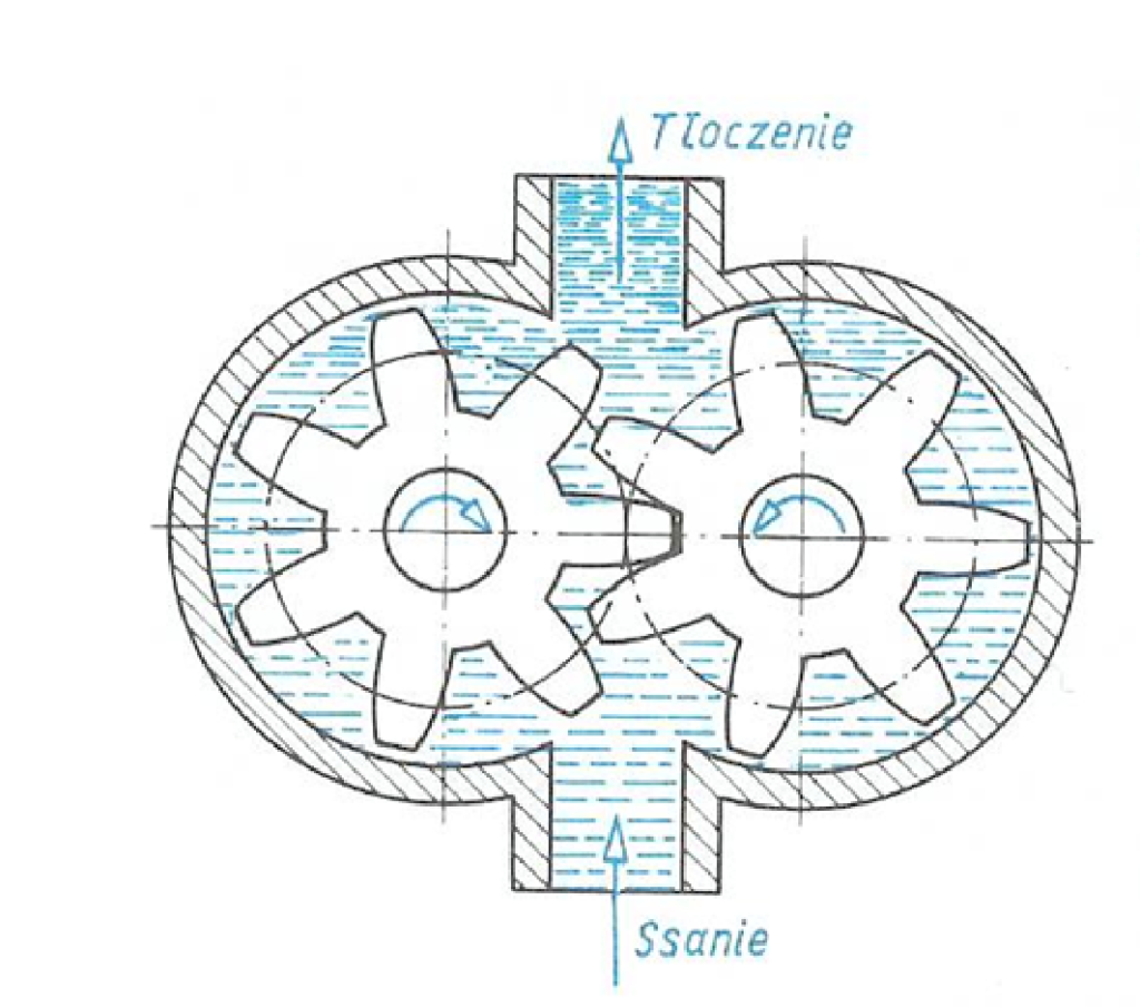 - Zębate, składają się z dwóch kół zębatych umieszczonych w szczelnym korpusie wypełnionym olejem hydraulicznym. Stosowane w napędach hydraulicznych i układach smarowania.